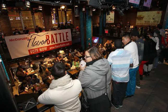 DJ Clue and radio/TV personality Sway greet each other at McDonald’s Flavor Battle launch.