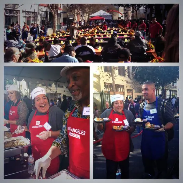 A number of celebrities participated in the Los Angeles Mission’s annual event, serving families on Skid Row.