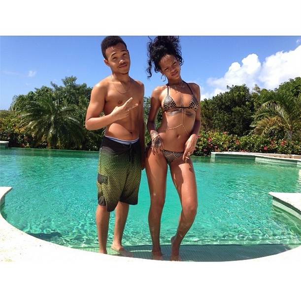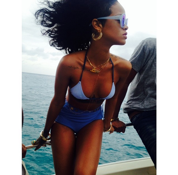 One things for sure, Rihanna knows how to make almost everything look seductive and sexy. And since all eyes are on the 25-year-old ‘bad gal’, we can’t help but stare (at times). Rihanna, her brother Rajad and best friend Melissa Forde have been spotted all over Barbados over the holiday weekend, partying and enjoying their hometown. On Saturday, photog’s swarmed as she bathed on One Sandy Lane beach, with a beer in her hand. Check out a few snaps of Rihanna enjoying a few smokes and some sun.