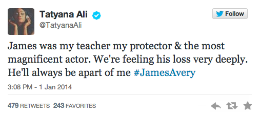James was my teacher my protector & the most magnificent actor. We’re feeling his loss very deeply. He’ll always be apart of me #JamesAvery