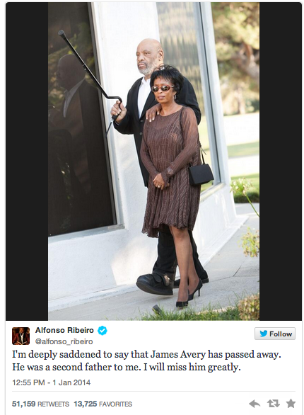 Earlier today Alfonso Ribeiro–the actor who played his son Carlton–was the first actor from the hit series to tweet about his death along with a picture, writing: