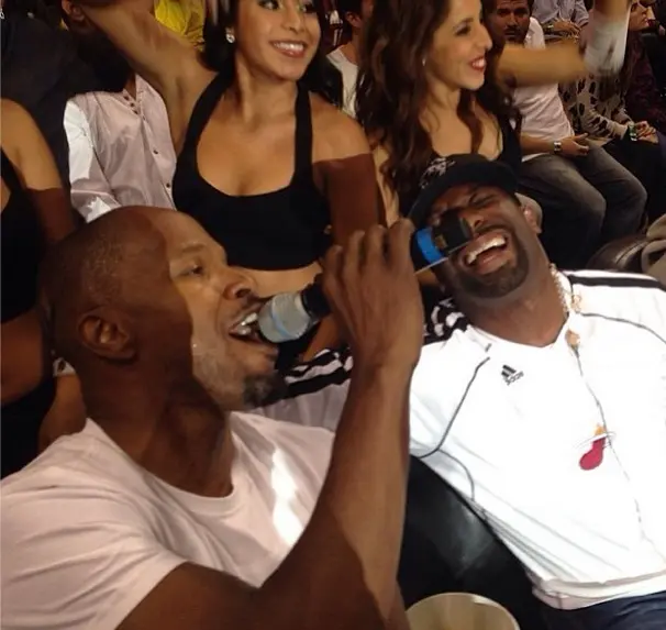 Singer/actor Jamie Foxx lends his pipes during the Miami Heat game.
