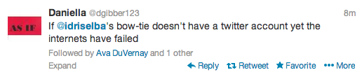 While you were sleeping, watching the game, or enjoying your fancy Saturday, actor Idris Elba broke twitter. Well, that’s a bit of a stretch, but he caused quite a stir Saturday evening, when he tweeted a photo of himself inside a limo. Sporting his finest red carpet attire (he was headed to the Palms Springs Film Festival), the Mandela star tweeted: