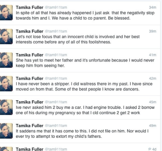 Despite a judge not granting him the order the allegations were still out and the rapper is still preparing for a nasty battle. Despite his public exchange of the situation Tamika has been mum on the entire ordeal, that is until yesterday (Jan 8). After having enough of the one-sided story, Fuller took to her twitter and tweeted the following: