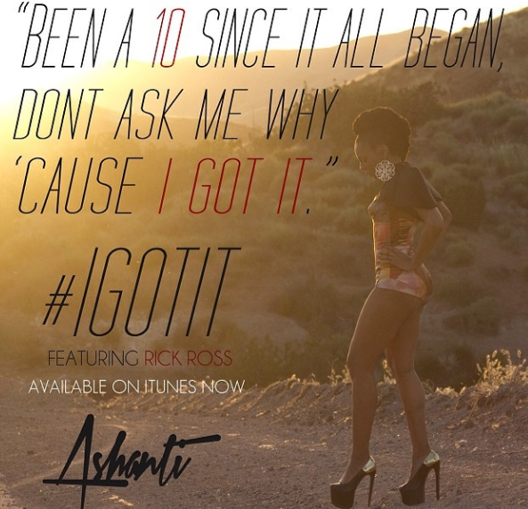 Move over, Rihanna! You’re not the only one who can serve skin. On Sunday (January 19th), Ashanti showed a bit of Instagram skin, posting photos of her in a bikini, submerged in water. Referring to the fact that she’s bold enough to pose chest naked, of course with her back to the camera, she wrote the caption: