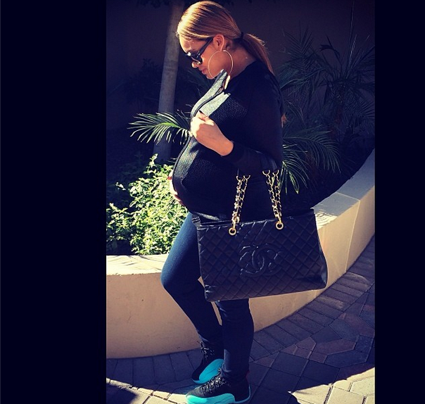 Growing and glowing. Evelyn Lozada stays fashionably knocked-up sporting sneakers and an oversized Chanel bag as she heads out of her Arizona home.