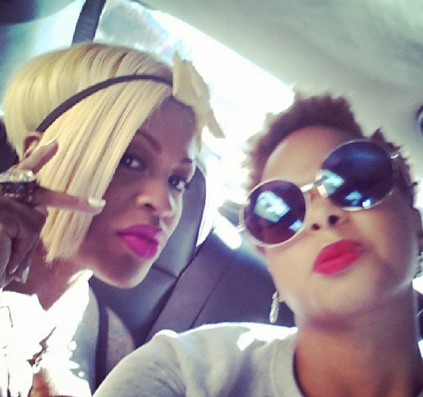 Lil Mo and Chrisette Michele snap a quick car selfie as they head to the Martin Luther King Day parade. Both are currently filming season two of R&B Divas LA.