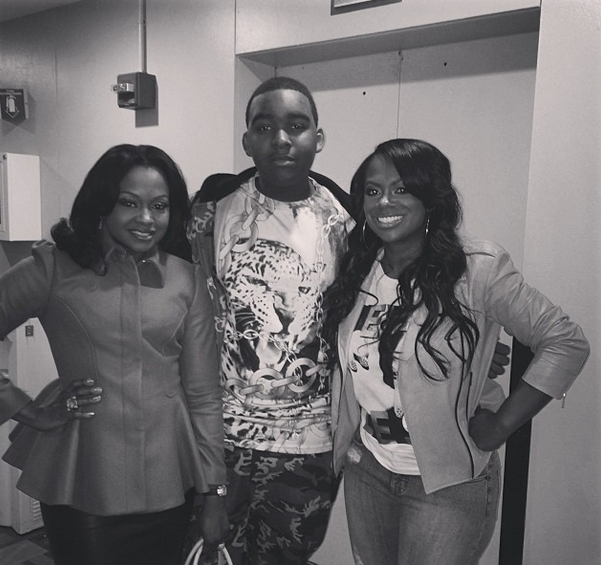 Phaedra Parks and Kandi Burruss pose with NeNe Leakes’ youngest son, Brentt. Cute!