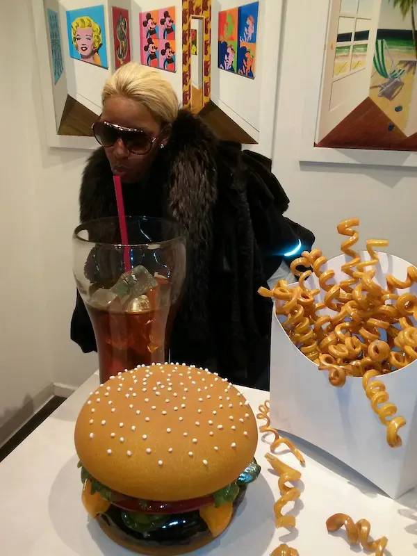 Thirsty? Reality star NeNe Leakes poses as he enjoys the Fast Food art at a NYC Gallery. Click here for the exclusive on why she’s spending so much time in NYC these days.