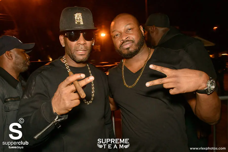 Mr. Kelly himself was spotted partying on the left coast, at Hollywood nightclub, Supperclub Hollywood. Smoking his signature cigars and sipping on a few high-end bottles (Ace of Spaces), this week R.Kelly partied alongside singer Trey Songz, The Game and Too Short. Check out a few photos.
