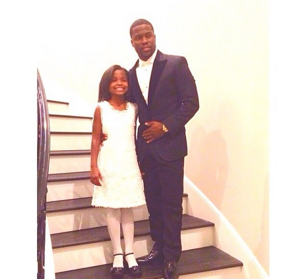The 34-year-old comedic actor has two children (Heaven Leigh and Hendrix) from his previous marriage with Torrei Hart. Over the weekend, we caught him taking off his professional Hollywood act (he’s promoting his second film, ‘About Last Night’) to spend quality time with his daughter Heaven. The two attended her first daddy daughter dance. Kevin shared photos of the event, writing: