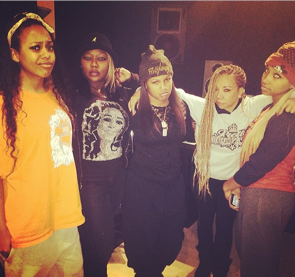 The OMG Girlz share their displeasure in the studio with Tiny and Latocha Scott (both of the retired girls group X-Scape).