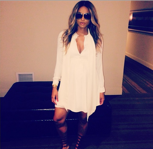 No time off for Kim Kardashian! The 33-year-old wears a leather Givenchy skirt, sleeveless Lanvin top, Tamara Mellon leggings, pairing the ensemble with a Jacon Chain, on Wednesday (February 12th) at Beverly Hills. She was joined by her close girlfriend, singer Ciara who is expecting with fiance Future. Both were swarmed by photos, as they left Bel Bambini in Beverly Hills. E! cameras were spotted filming the two fashion forward chicas for Keeping Up With the Kardashian’s, which is in its 9th season. Other celebrity friends expected on the upcoming season include The Game, Lorraine Schwartz, Lala Anthony and Blac Chyna. After their shopping excursion, Ciara wrote on Instagram: