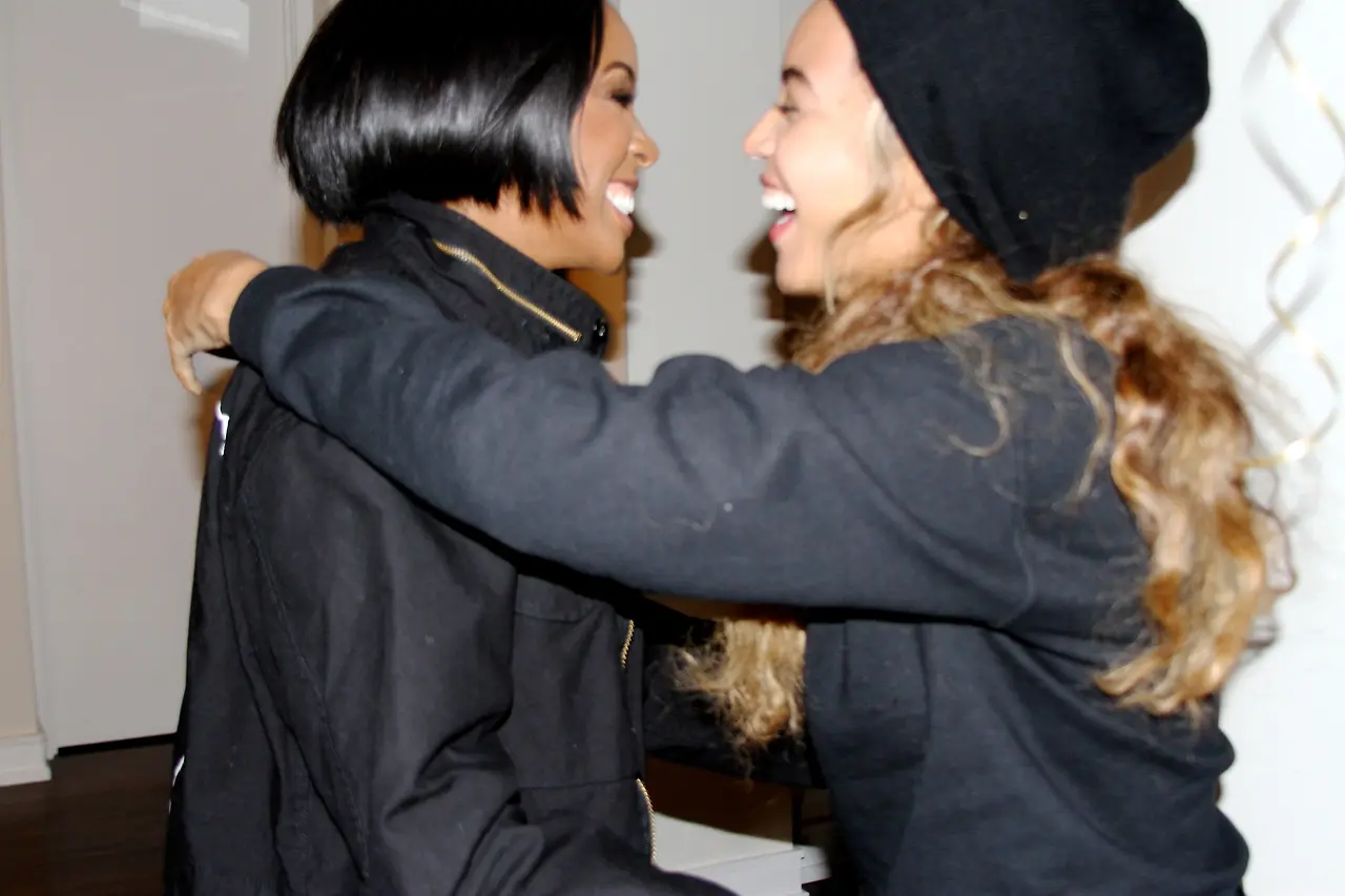 Last night (February 13th), it was a celebration of sorts as the Knowles sisters partied in the name of fashion. Beyoncé attended her sister’s MSQFT x SaintHeron New York Fashion Week event. The singer was in good spirits, baring skin in a metallic ensemble, pulling her hair up in a braided updo. She accessorized with multiple gold necklaces and natural make-up.Both Solange and Yonce sipped and danced throughout the evening with guests.