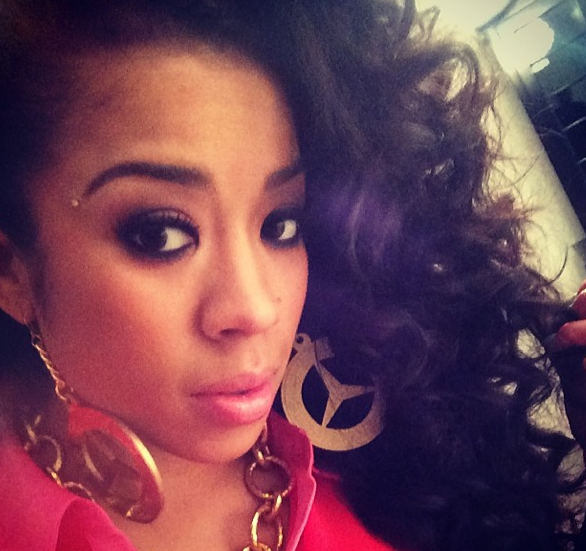 Keyshia Cole models Mercedes Benz emblem earrings from designer Melody Esani.