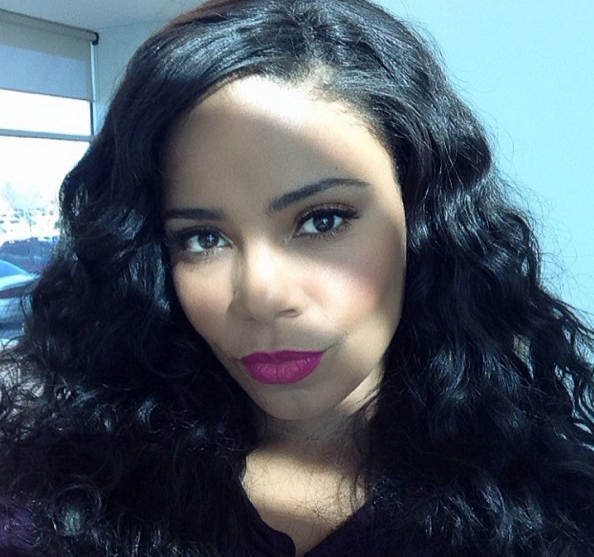 Sanaa Lathan shows off a gorgeous lip color with a kiss face.