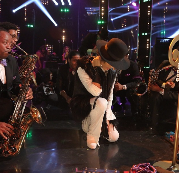 The uberly private Prince seems to be making more public appearances these days. After last month’s Superbowl, he guest starred on the Fox comedy, ‘The New Girl‘ and has been making the rounds on late night talks shows. Last night, clad in a black fur vest, bell bottoms, gold chains and a well maintained afro, the star appeared on the Arsenio Hall Show. The ultra private star showed a sense of humor as he revealed his biggest pet peeve and revealed that he can cook. He also performed the B side classic, ‘She’s Always In My Hair‘ with 3rdEyeGirl. Peep the excerpts and performance below.