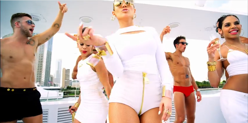 In the beginning of the video, a few of J.Lo and her girlfriend’s chat about how men are always featuring videos with yachts and skin-baring, scantily clad women.