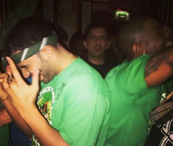 St. Patrick’s Day was a night to remember for rapper Drake (real name Aubrey Drake Graham). The 27-year-old Take Care artist spent his night in a festive, low-key way. Reportedly, he hit up a local bar in Dublin called ‘Temple Bar’, appropriately rocking green from head to toe. Wearing a green souvenir t-shirt and a green and white tie around his neck, Drizzy sipped on Guinness with a few friends and shared a few photos on Instagram. Check out a few candids of Drake in party-mode.