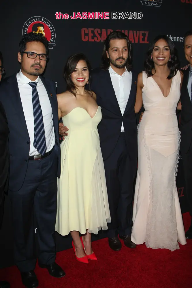 The cast of the new film, Cesar Chavez, attended the Los Angeles premiere. Michael Pena, America Ferrar, Diego Luna and Rosario Dawson were spotted on the red carpet. The biopic, which hits theaters March 28th, tells the story of Mexican-American civil right activist and labor organizer Cesar Chavez.