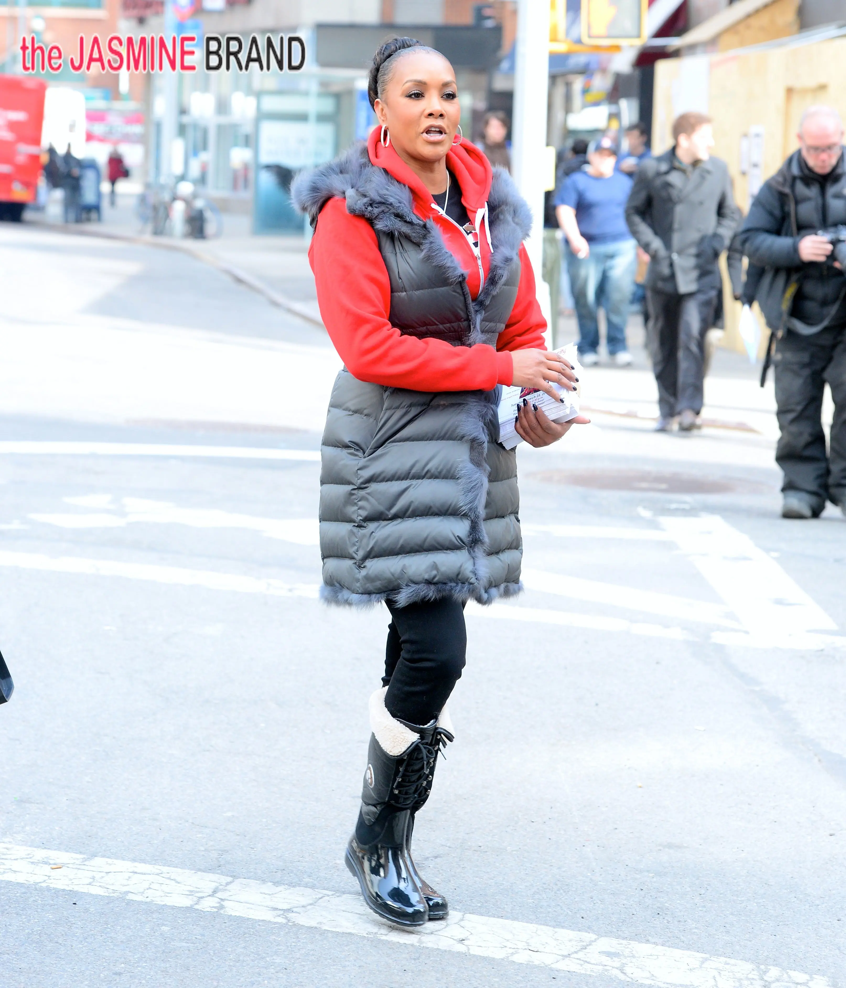 Tuesday (March 25th), we caught a few cast members filming as they worked a Pie Face charity event. Brandi Glanville, Keshia Knight Pulliam, Kenya Moore, Vivica Fox, and Leeza Gibbons were spotted in the Union Square Pie Face filming. We also caught Terrell Owens and Howard Stern filming different scenes.