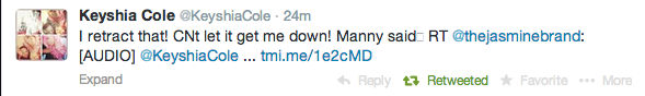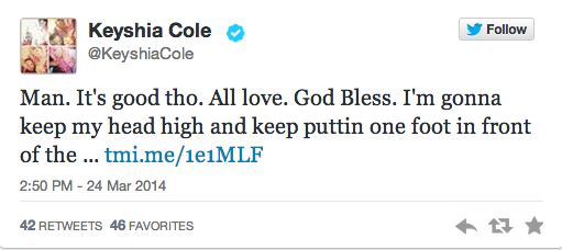 UPDATED 10:24 a.m. EST. Keyshia tweeted the following message after seeing the story: