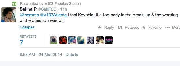 While she attacked the station in every tweet they tagged her interview and music premiere in the station took a different approach by posing a question and retweeting fans comments on the spat between the singer and host. Check out some of the tweets they retweeted.