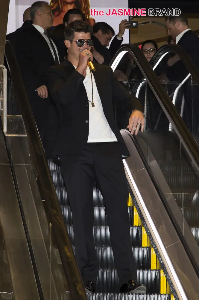 Robin Thicke performs in concert at Express Times Square Grand opening in NYC.