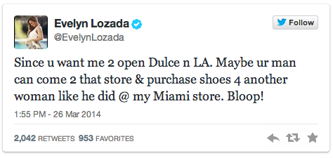 Since u want me 2 open Dulce n LA. Maybe ur man can come 2 that store & purchase shoes 4 another woman like he did @ my Miami store. Bloop!