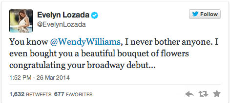That 5-minute segment within Wendy’s ‘Hot Topics’ didn’t sit well with the former Basketball Wives star. Wednesday (March 26th) afternoon, Evelyn responded to Wendy’s comments. Using Twitter as her platform of choice, Evelyn threw a few jabs back and even suggested that Wendy’s husband had some type of inappropriate relationship, outside of his marriage. She wrote: