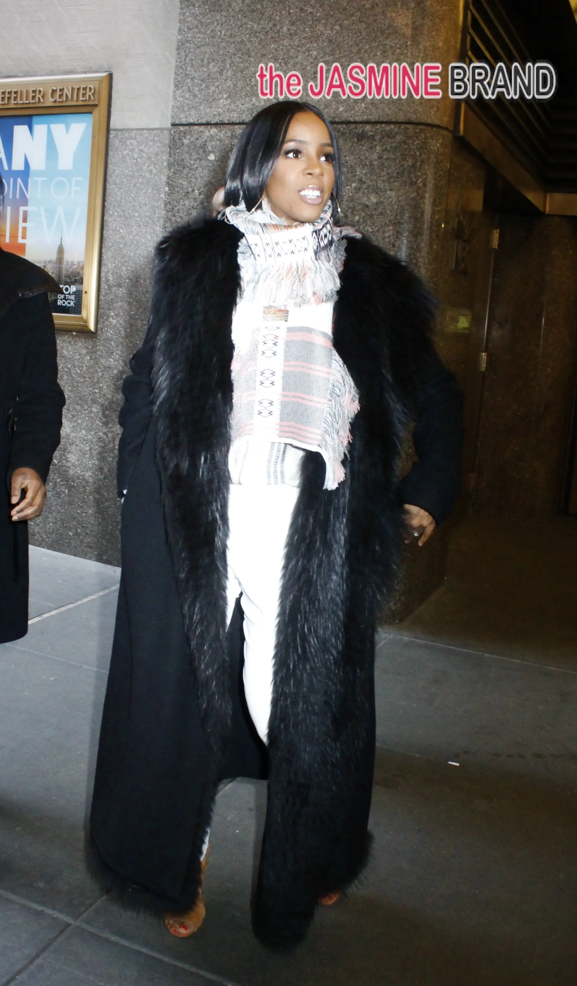 Kelly Rowland rocks a full-length fu, as she steps outside of her NYC hotel.