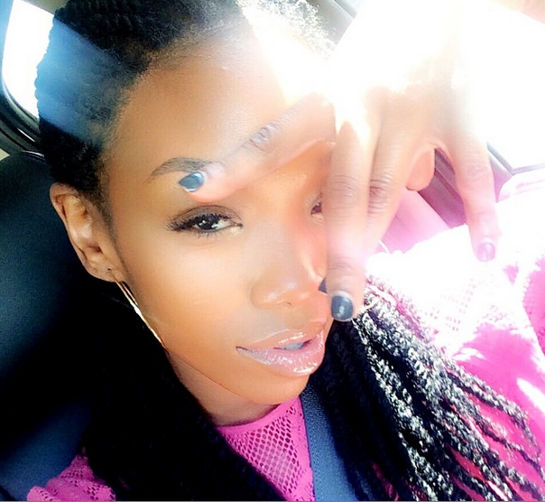 Deuces! Singer/actress Brandy loves a car selfie. The Game actress stunts and throws up a peace sign for Instagram fans.