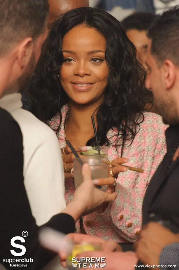 I guess allt he talk about Rhianna being pregnant wasnt true because she sure had that blunt in her hand while she was reaching for her drink from her boo, lol.