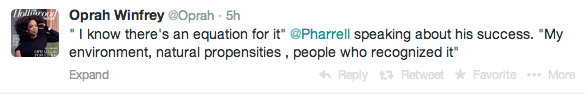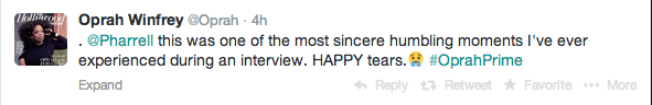 Check out a few tweets from Oprah and Pharrell, along with the full episode.