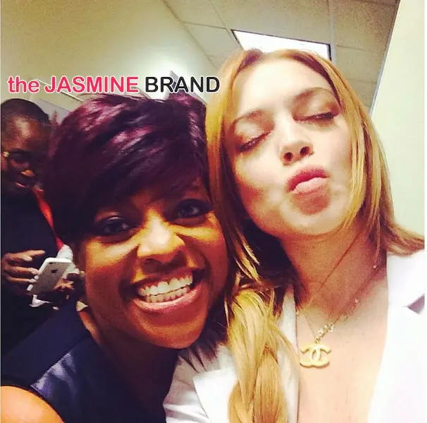 The View co-host Lindsay Lohan puckers up, while taking an #USIE with Sherrie Shepherd.