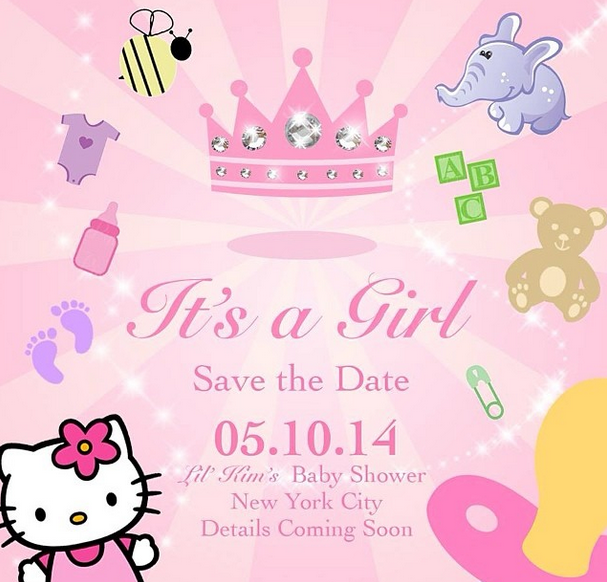Happy Easter everyone !!!! What a perfect day to share this wonderful news with U. The fab @davidtutera is throwing my royal baby shower for my lil’ princess 5/10/14!!! Thank U for the awesome graphic @dustyaceti !!!! Muahhhh!!! #TeamLilKim. Love U all so much !!! Muahhhh !!!