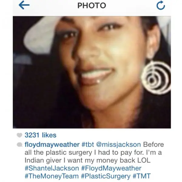 #TBT @missjackson Before allt he plastic surgery I had to pay for. I’m a Indian giver I want my money back LOL #Shantel Jackson #FLoydMayweather #TheMoneyTeam #PlasticSurgery #TMT