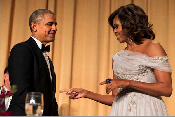 The featured entertainer was comic actor Joel McHale, the star of the NBC series “Community.” We spotted a ton of celebrities hitting the red carpet and snapping cell phone photos of their festive evening, including: Mindy Khaling, Ron Meyer, Zooey Deschanel, Kevin Hart and girlfriend Eniko Parish, Questlove, Katie Courik, AJ Calloway, Alicia Quarles, Julianna Magulies, Barbara Walters, Lupita Nyong’o (Oscar de la Renta), Olivia Munn, Lindsey Vonn, Cam Newton, Rosario Dawson, along with hosts President Barack Obama and First Lady Michelle Obama (Marchesa).