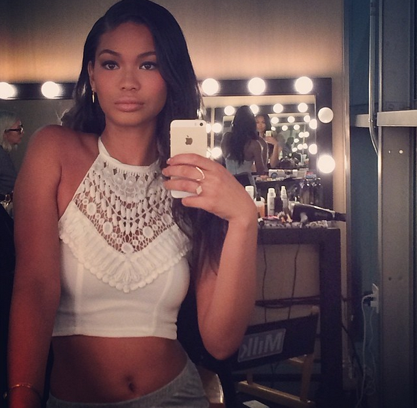 Supermodel selfie! Chanel Iman has perfected her shot, while in between takes at a photo shoot.