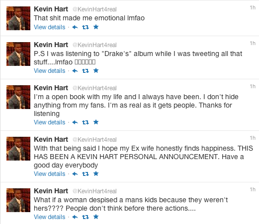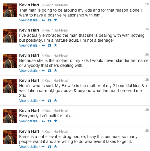 She has a right to be bitter if she is (and I don’t think she is). Was anybody telling Kevin to stop talking about her when he used her as material in his stand-up? And we know Kevin is lying when he says they were a part for 7 years–isn’t his youngest son just 6?