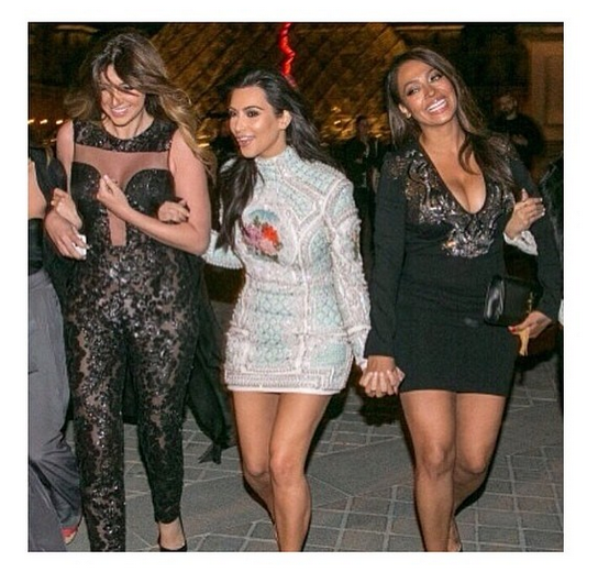 The private dinner was held at the Salon Chinois inside the Costes Hotel. In attendance were Kim’s sisters Khloé Kardashian, Kendall Jenner, Kylie Jenner, BFF Lala Anthony, designer Rachel Roy, Joyce Bonelli, jewelry designer Lorraine Schwartz, Shelli Azoff, and Brittny Gastineau. According to E!, the dinner was hosted by Lorraine and Shelli.