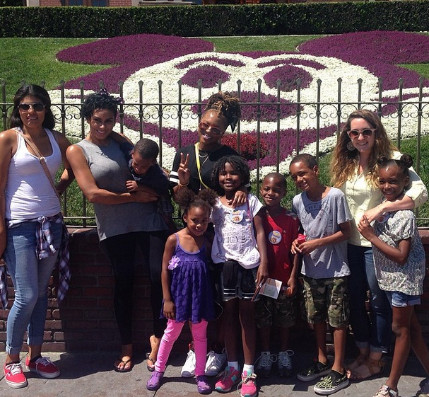 Former Basketball Wives LA’s Laura Govan and Atlanta Exes’ Torrei Hart with their children at Disney Land.