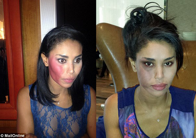 TMZ had pics of her a day or 2 after the incident. She was walking around NYC with a friend and i didnt see any of those bruises. Maybe i wasnt looking hard enough.