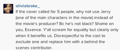 Essence was definitely wrong on this subject. Even as a “black” magazine, you can cater to a race while still featuring other races on the publication. “White” magazines feature black artists and actors all the time. And if they didn’t I am sure we would all be ready to protest. It is inexcusable. My only thought would be maybe Gary and Jerry were busy or something or maybe their roles in the film have decreased. Not sure how anyone at Essence could justify that…