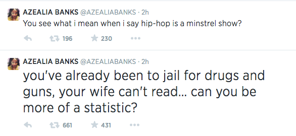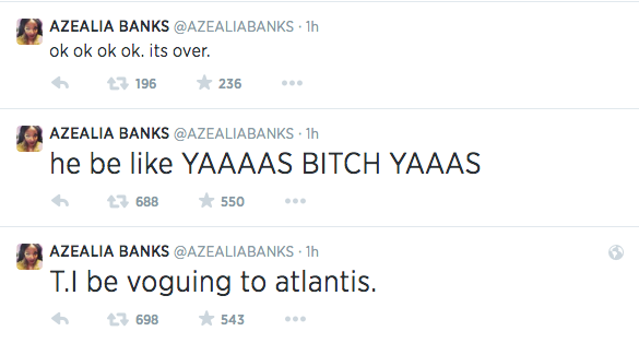 Azealia tweeted, which folk suggest was directed at T.I.: