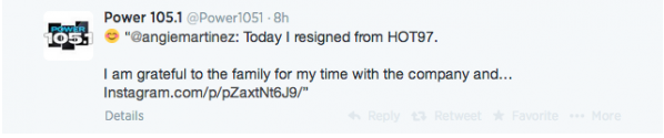 Angie has yet to confirm her move, but she is expected to visit The Breakfast Club next week. She’ll join Power 105 in July.