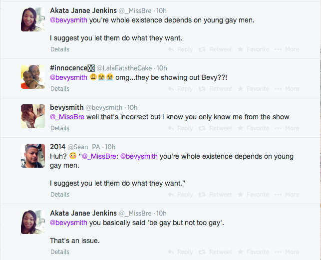 P.S. Did you find Bevy’s Tweet offensive? BTW, here’s a link [that she tweeted] to an interview that she did with The Advocate.