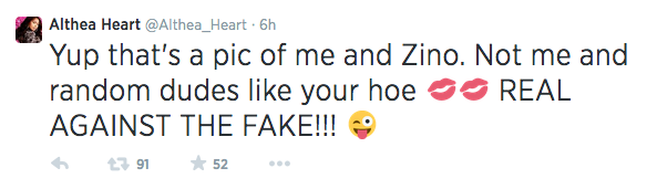 Althea has responded, confirming that the photo is indeed of her, but the gentleman in the photo is Benzino. She wrote: