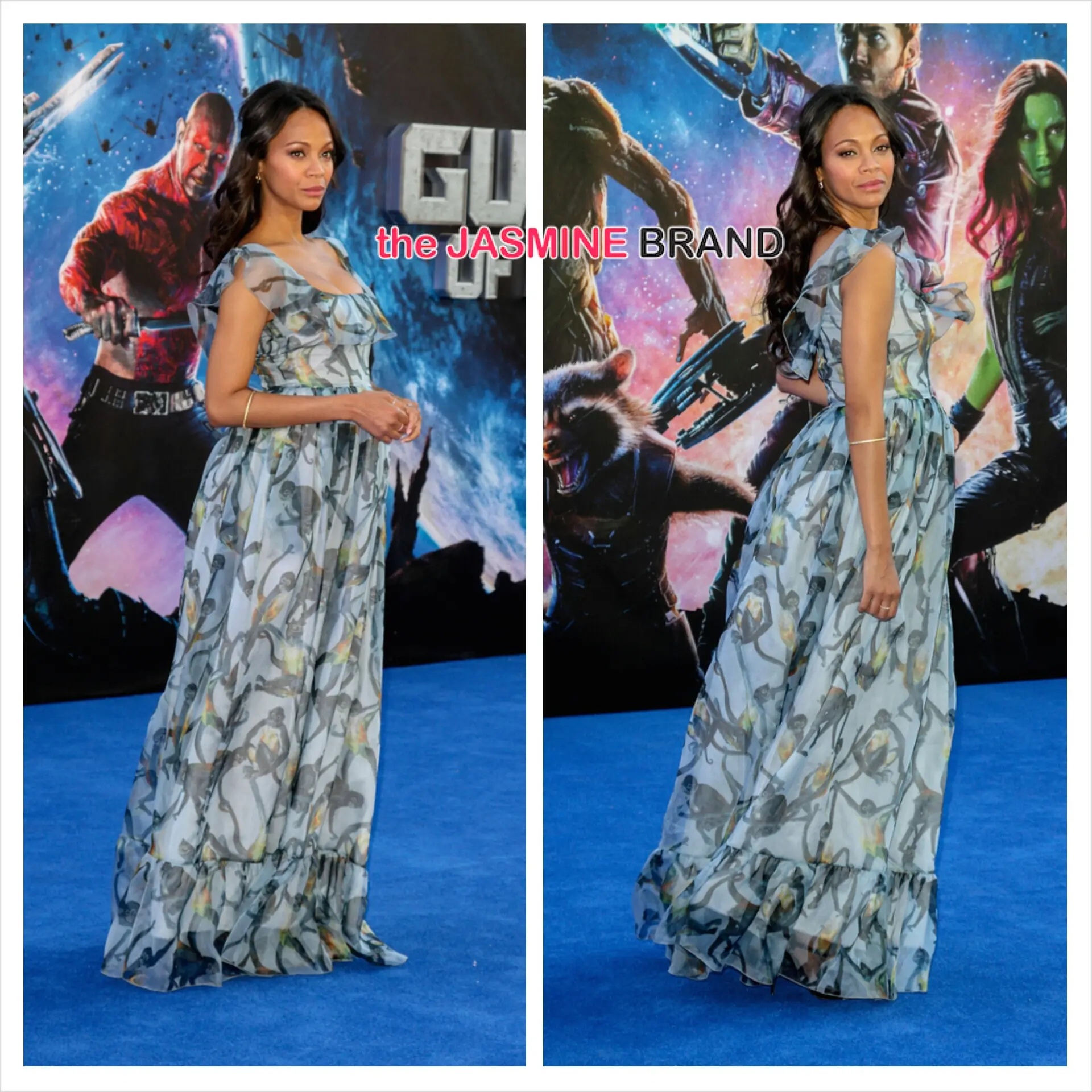 Zoe Saldana’s bump keeps growing. The actress, who is reportedly expecting twins, attends the Guardians of Galaxy premiere.