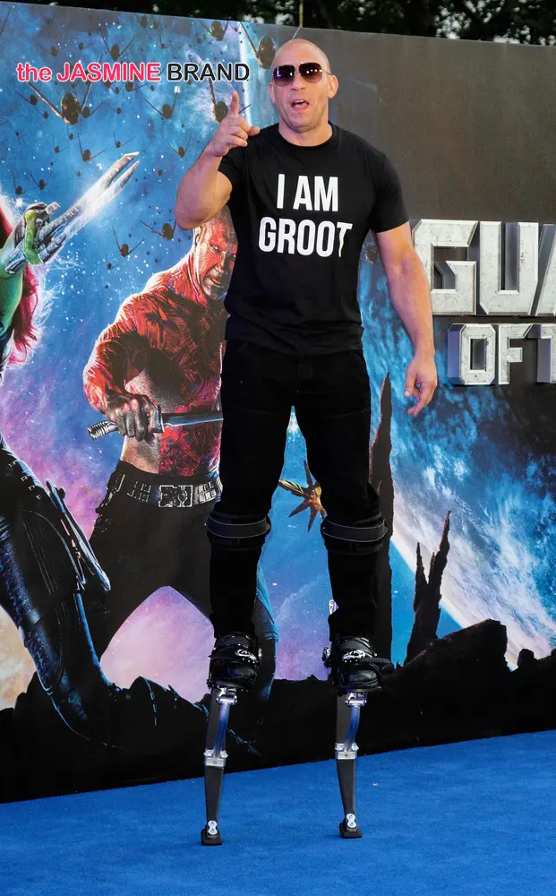 Tolula Adeyemi, Vin Diesel and Amal Fashanu attend “Guardians of the Galaxy” European premiere.